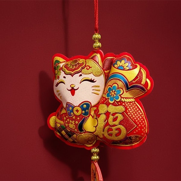 - 立體造型: 絨布材質使招財貓與福魚造型飽滿,觸感溫潤。