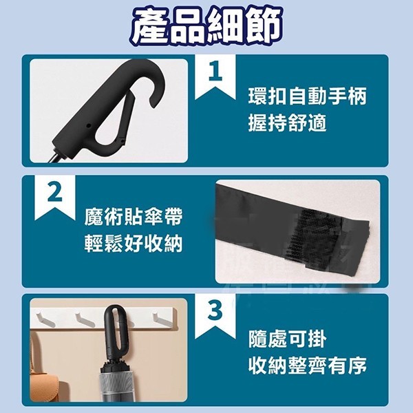 3支以上 $133元/支 - 環扣設計 隨處可掛 - 專屬傘套 不亂滴水 - 雙纖龍骨 抗風抗雨 - 一鍵開傘 單手操作 - 三色隨機出貨 【顏色、款式、尺寸 皆隨機出貨】 【下單前:務必"詳閱購物須知,下單視為接受"購物須知"內容】 【下單不保留商品,要結單請主動與客服聯繫】 【公司提供多種下單管道,庫存數量僅供參考,實際數量請洽小幫手】