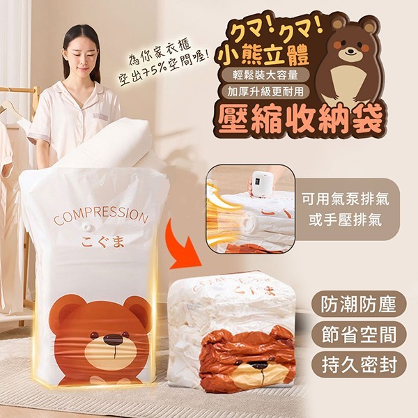 7631 熊熊款-超大立體壓縮袋80x100x38cm