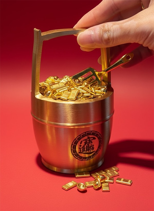 -好運開挖: 專屬招財金鏟,親手將財氣撥入桶中,寓意「挖掘商機,金銀滿溢」。