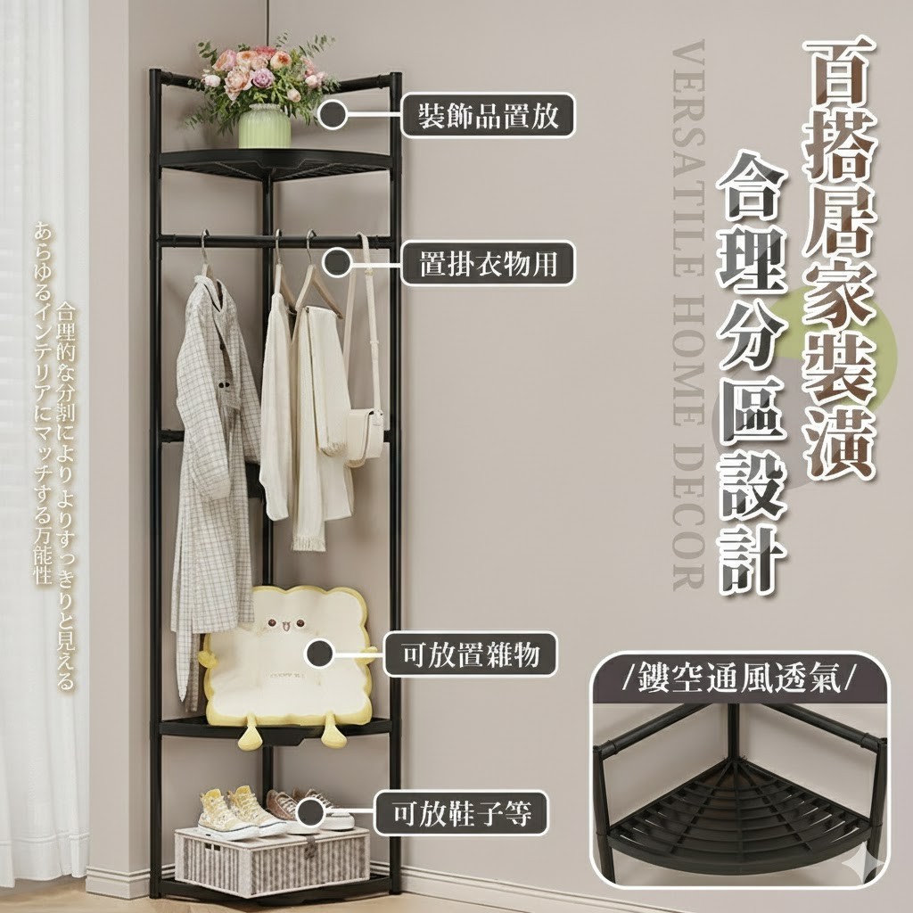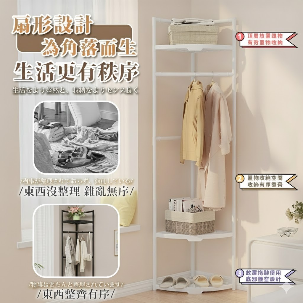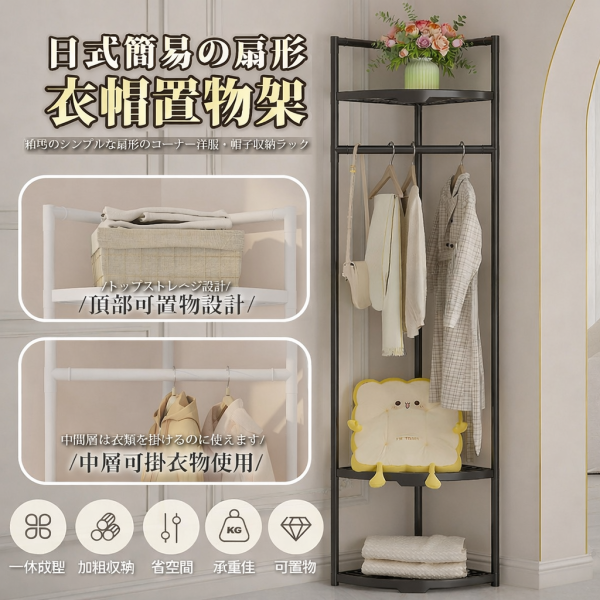 7674 日式扇形落地衣帽置物架