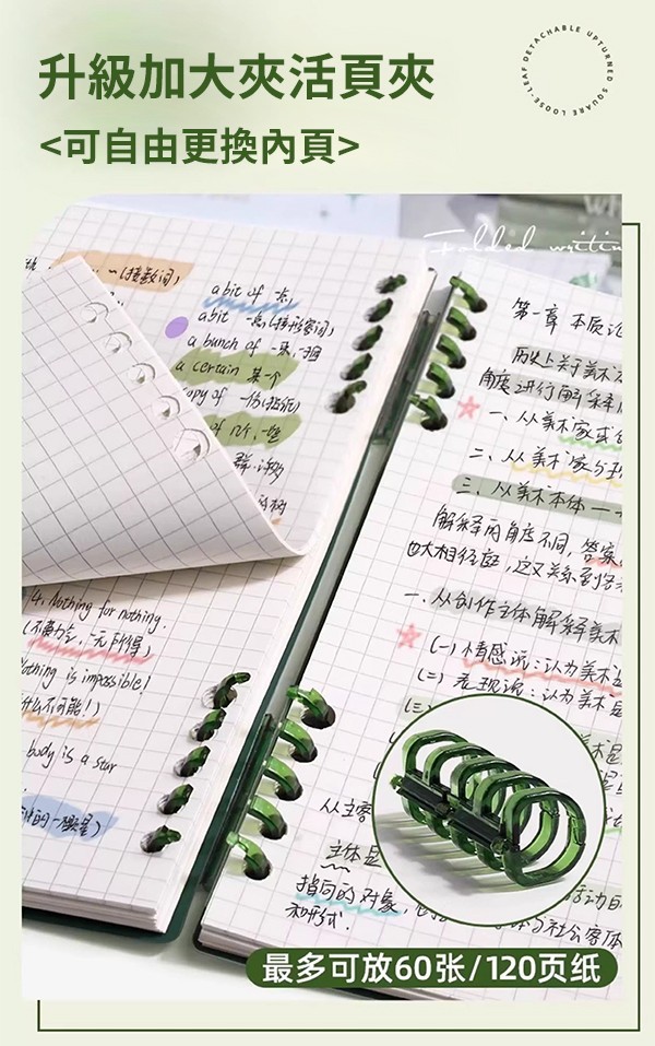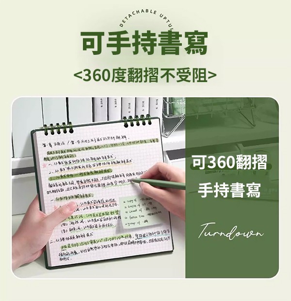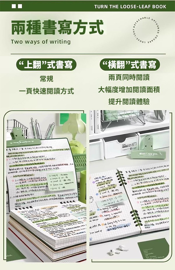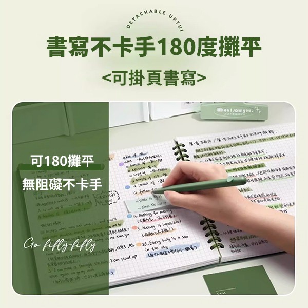 攤開不翹頁,讓書寫更流暢,頁面更有延展感~