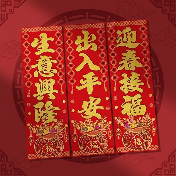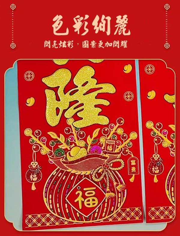 - 立體燙金絨布春聯,手感視覺雙重頂級!