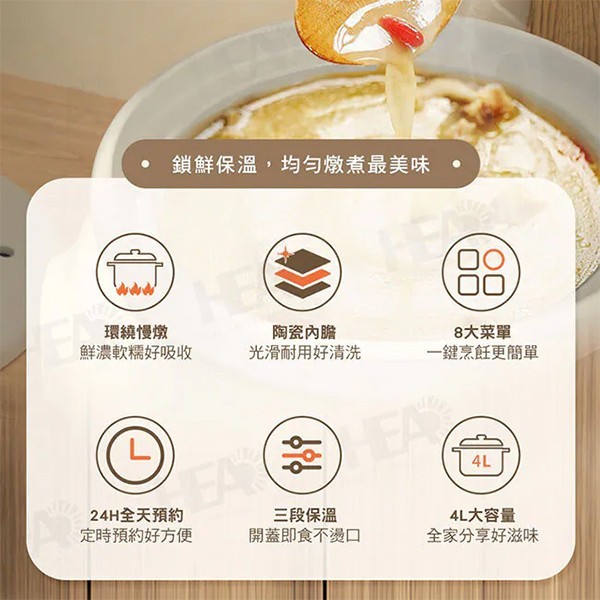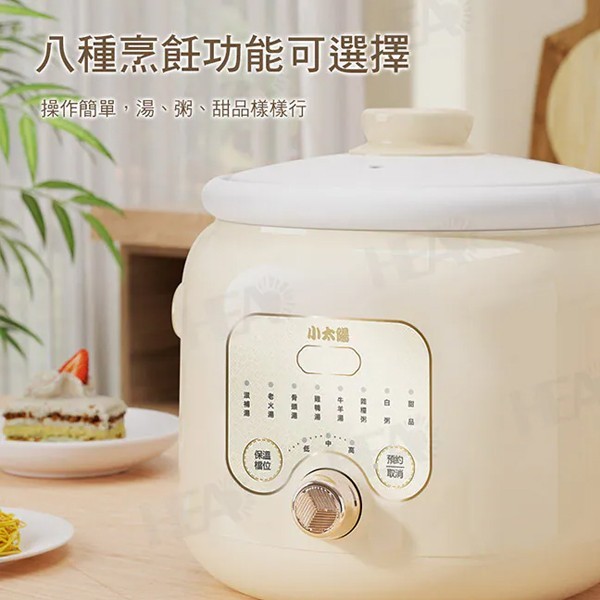 - 八種烹飪功能,湯、粥、甜品樣樣行