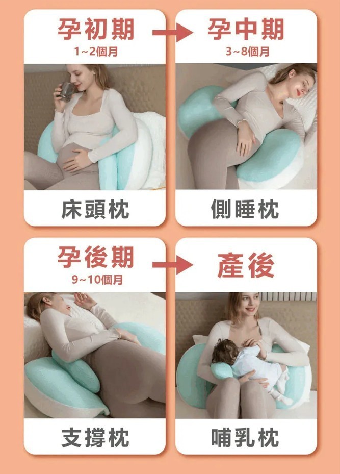 - 一枕多用,CP 值超高: * 孕初期:墊在背後,是舒適的床頭靠枕。