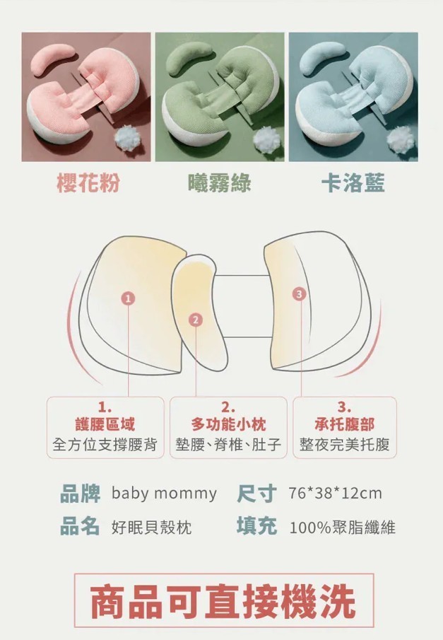 - 這不只是一個枕頭,而是妳孕期的「睡眠神隊友」。獨特的貝殼結構設計,讓妳告別翻身困擾,找回遺失的深度睡眠: