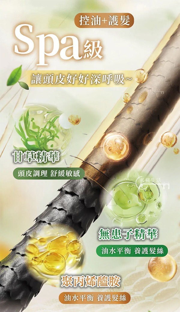 ? 無患子精華:精準平衡油水,養護髮絲。