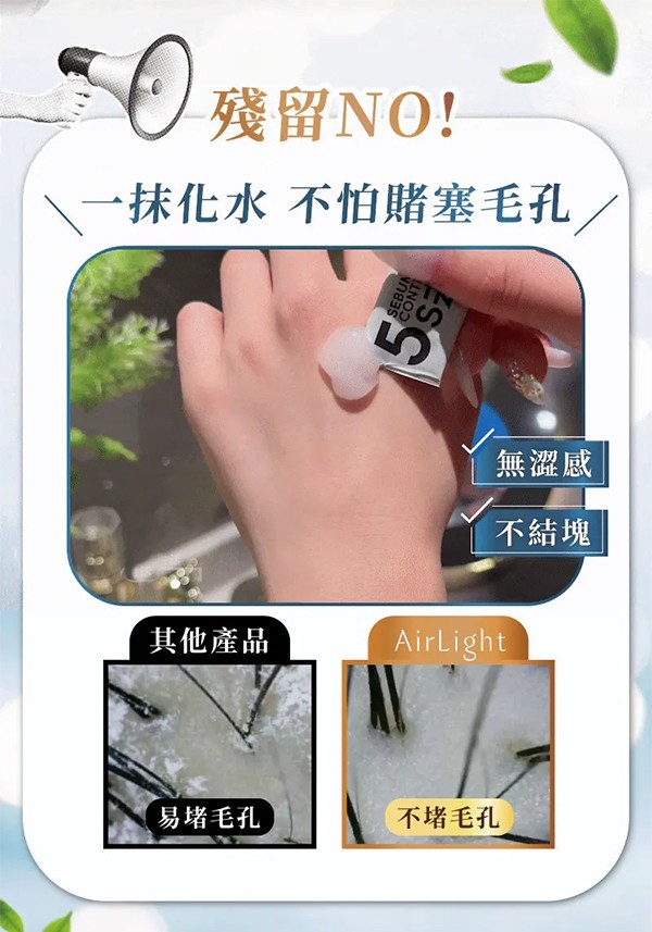 ❌ 不留白粉 ❌ 不堵塞毛孔 ❌ 不必沖水