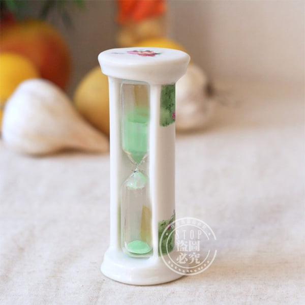 0005 華麗屋鄉村玫瑰 陶瓷計時器 原價299元 >>起批1支 一支30元 >>起批25支 一支25元 ⏱烹飪、烘焙、泡茶時,常需要計時器輔助精準測量。 ⏱此款沙漏一次完整滴漏需時 3 分鐘, ⏱適合煮水煮蛋、泡麵、泡茶時拿捏時間; ⏱陶瓷玫瑰圖樣精緻設計予人美麗高貴感,亦可作一般擺飾觀賞用,十分療癒舒壓。 ⏱尺寸:高度10.2公分 直徑3公分 ⏱材質:玻璃、陶瓷