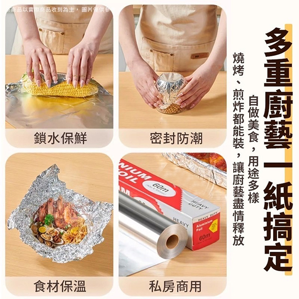 可用於包裝、食材保鮮、燒烤烹飪或是搭配烤架做臨時烤盤等,