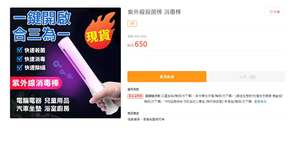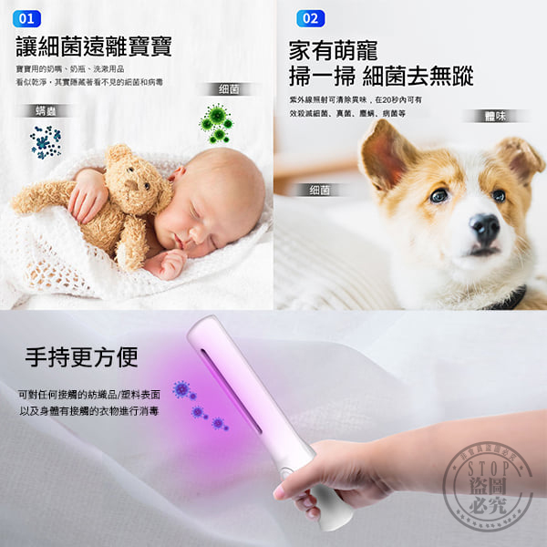 3.本產品是按壓式開關,要殺菌燈亮需要一直按著按鈕,放開按鈕殺菌燈即會熄滅。