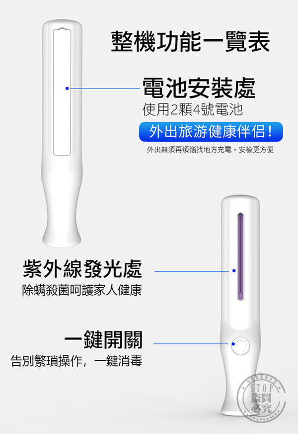 2.此為便攜式殺菌棒是裝兩顆4號電池,無附電池