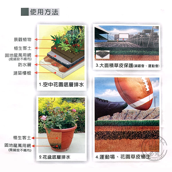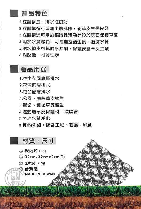 * 立體構造,可增加土壤孔隙,使草皮生長良好