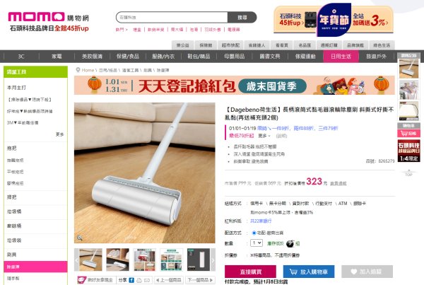 * 可懸掛設計,黏塵滾輪用完,可掛起來收納