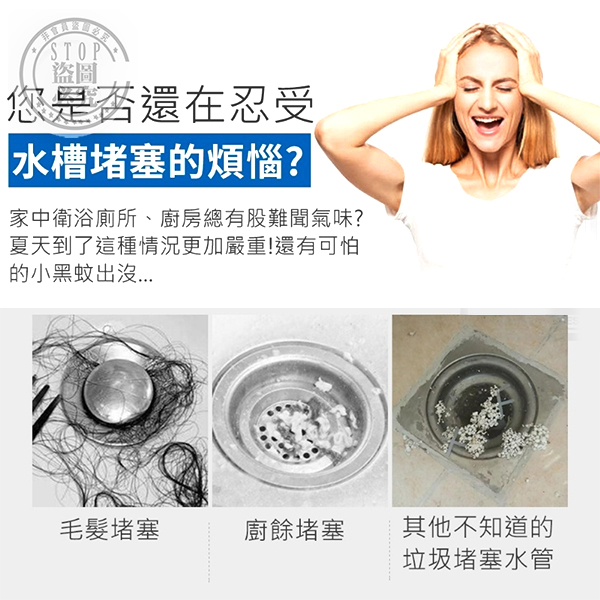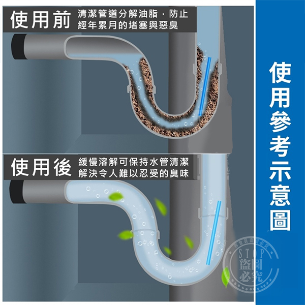 * 適用各類型排水孔,快速溶解,有效分解壁內油脂,解決黴菌卡垢異臭等問題