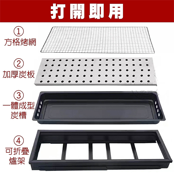 團購價:$199元/座 批發價:$180元 / 2座以上 * 大面積烤肉網 滿足燒烤需求 * 提把設計 外出提攜方便 * 可抽拉換網,換網效率快速簡單 * 通風對流設計 快熱就是讚 * 尺寸:60公分 x22.5公分 x 33公分