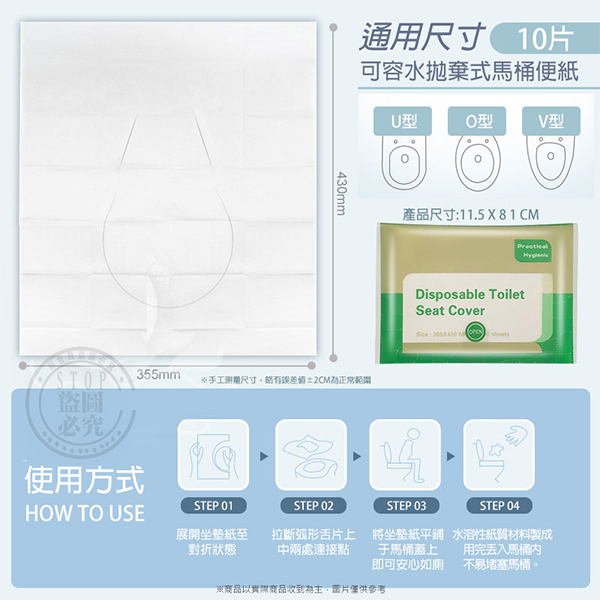 * 坐墊紙採用天然原木漿紙,使用後可直接丟入馬桶內,